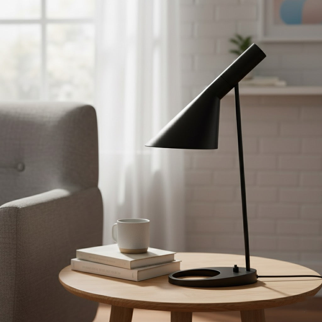 Ya sea en un escritorio, un rincón de lectura o una sala de estar, la lámpara Jacob AJ aporta equilibrio visual, calidez y carácter.