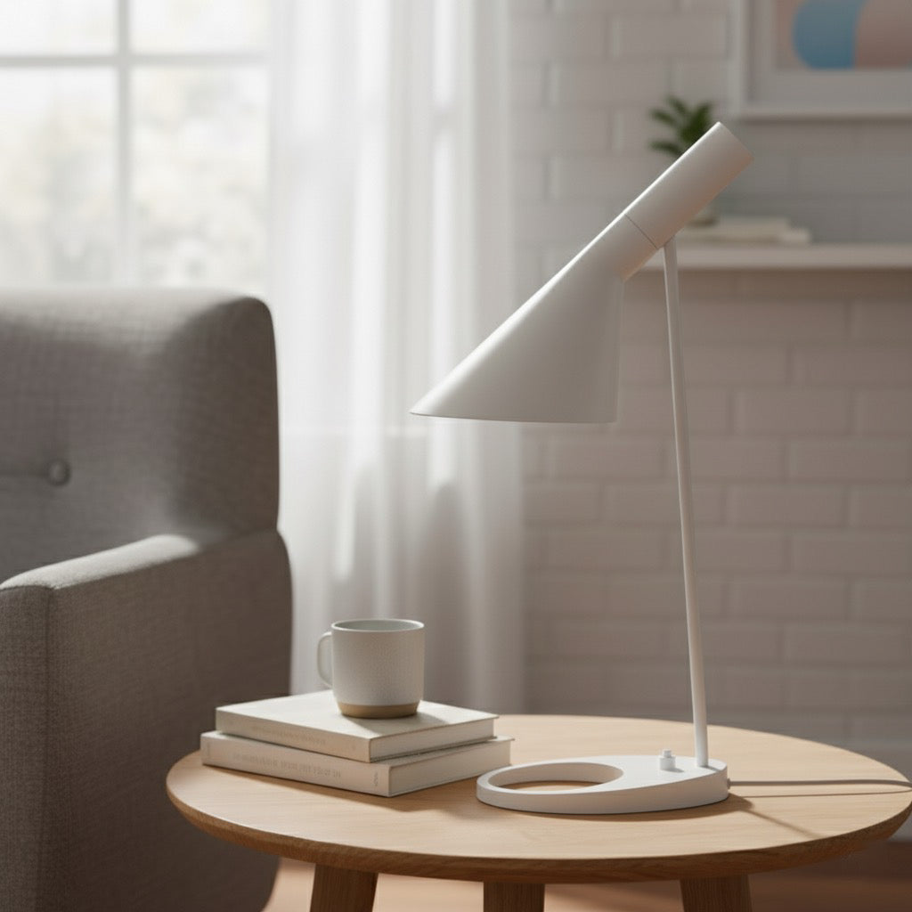 La lámpara Jacob AJ es una obra maestra del diseño escandinavo. Su silueta minimalista y su pantalla cónica inclinada proyectan una luz dirigida y envolvente, creando atmósferas cálidas y sofisticadas.