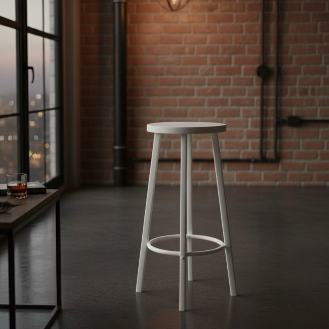 Con líneas rectas y proporciones equilibradas, el Walter destaca por su presencia ligera y sólida a la vez, adaptándose fácilmente a bares, cocinas, estudios creativos o entornos de estilo loft. Su asiento circular y los reposapiés metálicos integrados garantizan comodidad, estabilidad y ergonomía sin sacrificar su perfil esbelto.