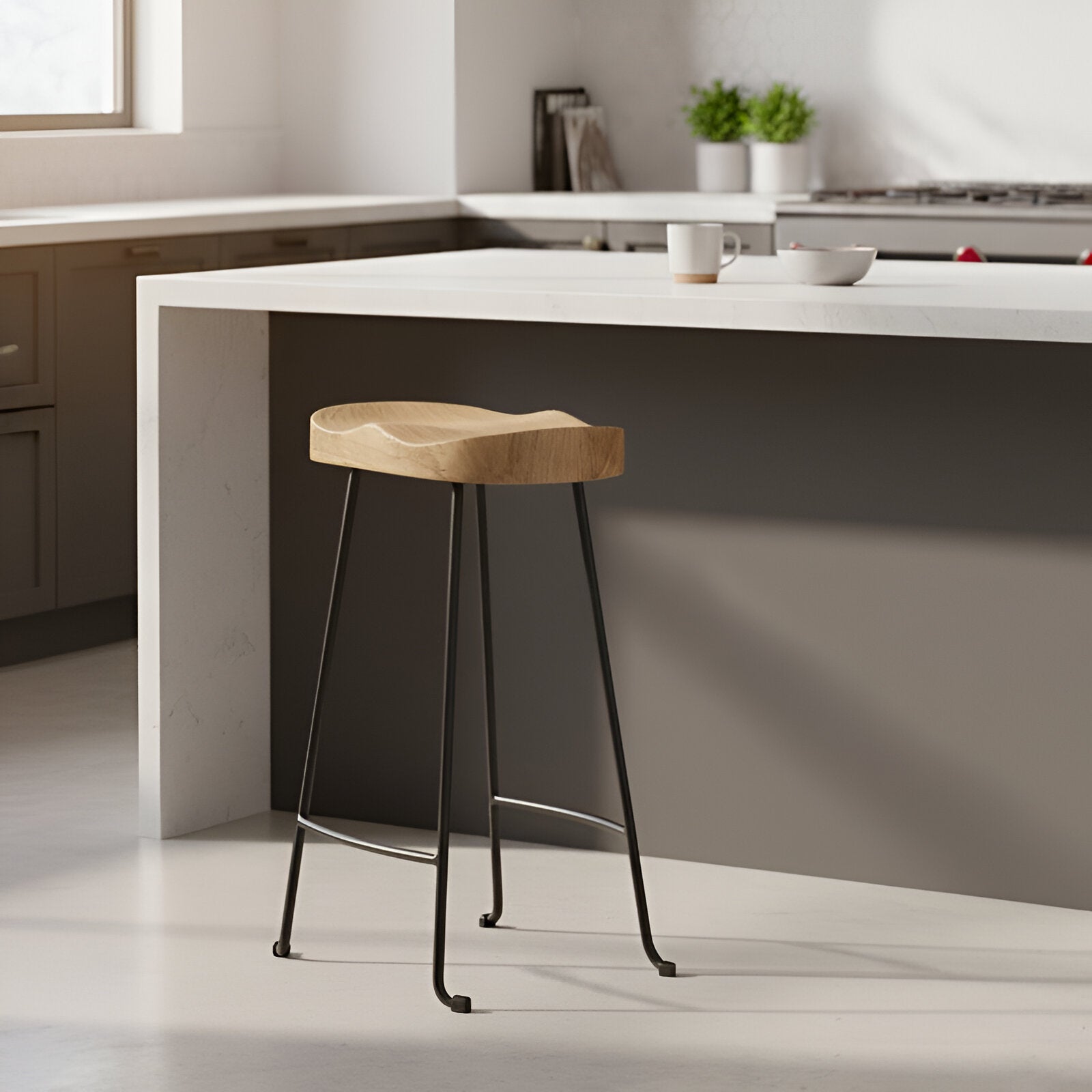 Con una base metálica de forma ligera y un asiento tallado en madera maciza, el taburete Gavin ofrece comodidad y resistencia sin renunciar al diseño. Cada curva y cada unión han sido cuidadosamente pensadas para lograr una pieza atemporal que se adapta con naturalidad a cualquier entorno.
